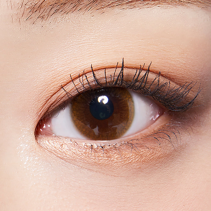 Soft chocolate gradient with a feathered limbal ring. The 13.2 mm graphic sits inside a 14.3 mm DIA for natural, everyday enlargement that blends cleanly on dark irises.
