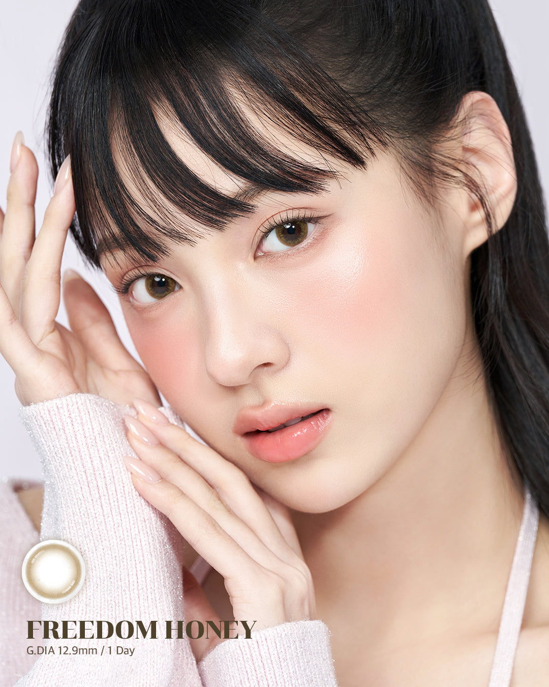Honey-brown ring with subtle golden lines; 12.9 mm G.DIA for soft, natural brightness with a crisp pupil.
