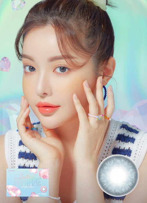 Cool ash-blue with a subtle ice-crystal motif and a fine ring; the 13.5 mm graphic adds clear sparkle while staying wearable for everyday looks.