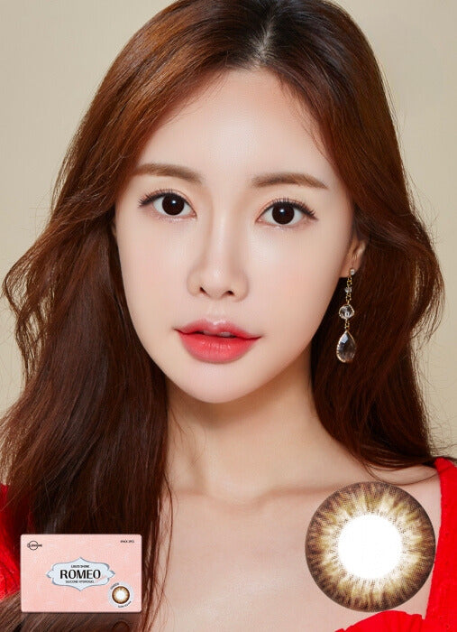 Romeo Choco frames the iris with a soft choco-beige blend and a precise ring. Its 13.6 mm print brightens and sharpens the gaze while keeping the vibe natural.