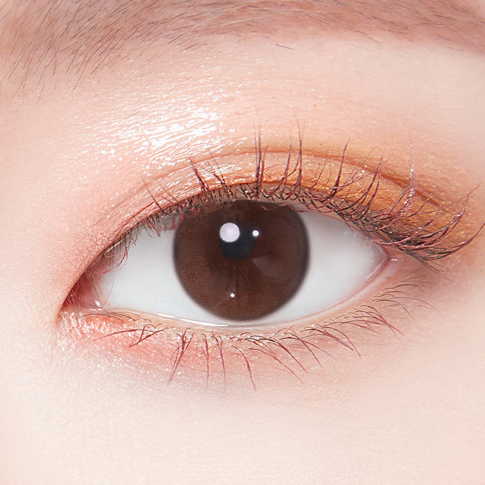 Warm satin-brown gradient with a fine micro-dot ring. The compact 12.8 mm graphic on a 14.0 mm lens gives clean definition and a natural, everyday glow.