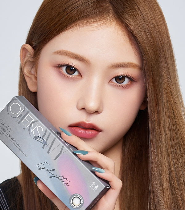 Elevate your daily eye game with OLENS Eyelighter Glowy 1 Day Black lenses. These daily disposables give you an instant “glowy” upgrade thanks to a multi-shade blended highlight pattern and deep edge line that mimic natural light reflections, adding realistic sparkle to your gaze. A 13.1 mm graphic diameter gently enlarges your iris for a subtle big-eye effect that feels authentic, never overdone.