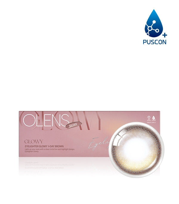 Transform your daily eye look with OLENS Eyelighter Glowy 1 Day Brown lenses. Crafted from PUSCON material with 48% water content, they lock in moisture and promote oxygen flow to keep your eyes fresh and hydrated from morning meetings through evening plans. The multi-shade blended highlight pattern and deep edge line create a natural sparkle that catches the light beautifully, adding dimension without appearing overdone. A 13.1mm graphic diameter gently enlarges the iris for a soft big-eye effect, while the warm brown tone-up shade blends chocolate and amber undertones to lend depth and warmth to any look.