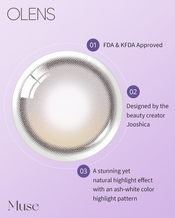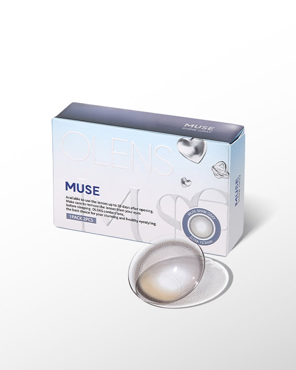 Muse Shine Gray features a contrast-driven pixel architecture: an ash-white highlight ring seamlessly overlays a cool gray base within a precise 13.3 mm graphic diameter, framed by a 14.0 mm total diameter. This layered design captures and refracts light like glistening dew across the iris, sculpting multidimensional depth and an organic, softly luminous gray-eyed effect without harsh boundaries.