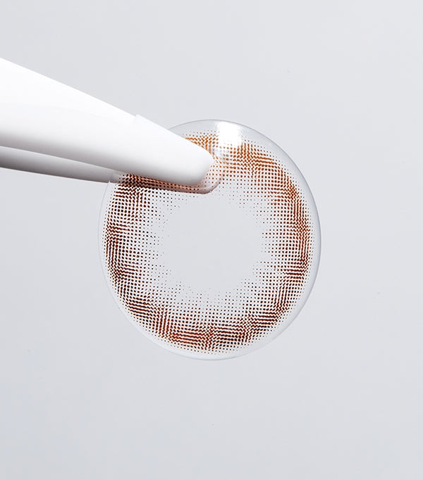 Falling Brown showcases a meticulously pixelated gradient design: micro-dots disperse from a soft, honey-brown core into a deeper chocolate-brown rim, all framed by a silky soft edge line. This intricate pattern scatters light naturally across the iris, sculpting subtle depth and a gentle enlargement that feels completely organic.