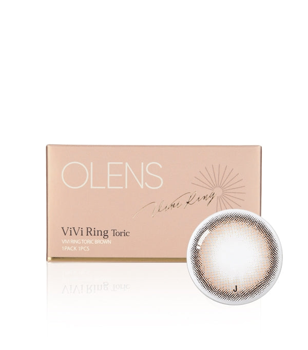 Olens ViVi Ring Brown Toric monthly lenses blend corrective function and stylish design. The Vivi Ring Brown edge creates a warm-toned warm around the iris, enriched by a 13.0 mm graphic diameter for subtle enlargement. PCMLC moisture technology locks in hydration for lasting comfort throughout the month.